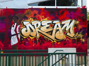 This mural honours Andrew Bennett, who was the first Canadian to be chosen as the number one pick in the NBA draft. Bennett lived in the Jane-Finch area until he was ten years old.